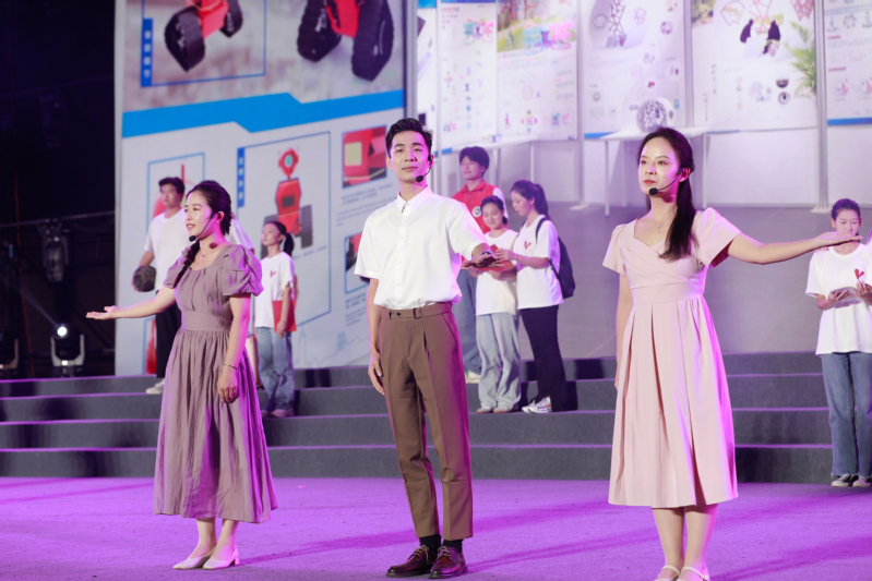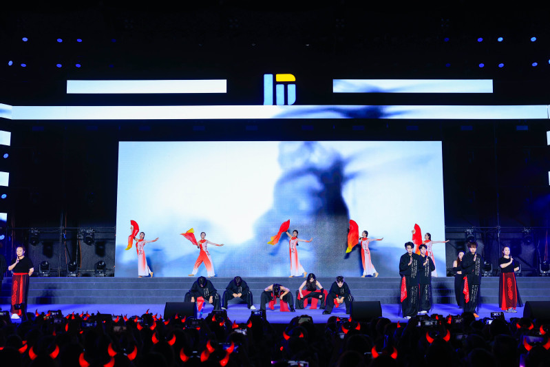 晚会以“璀璨机电梦·相约共启航”为主题,由三个篇章组成。第一篇章“缘梦机电·初相遇”由一场灯光秀拉开序幕。小合唱《篇章》鼓励学子面对挑战时保持希望,勇敢追梦;笛子重奏《一程山路》悠扬响起,带领观众穿越壮丽山河,抒发对未来的无限向往;朗诵《常州机电欢迎你》寄语新生珍惜大学时光,用勤奋与智慧书写青春华章;舞蹈《华夏》则以独特的艺术手法,展现华夏文明的博大精深与辉煌成就。