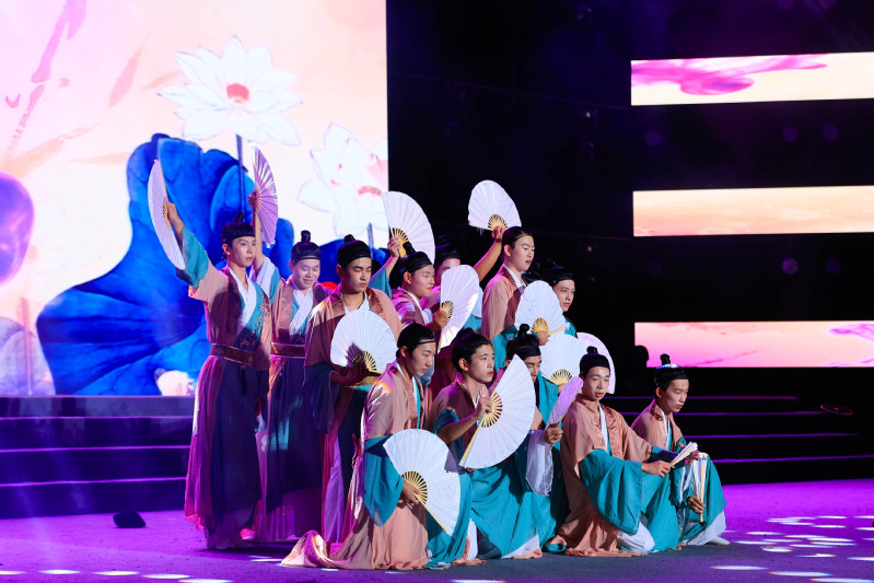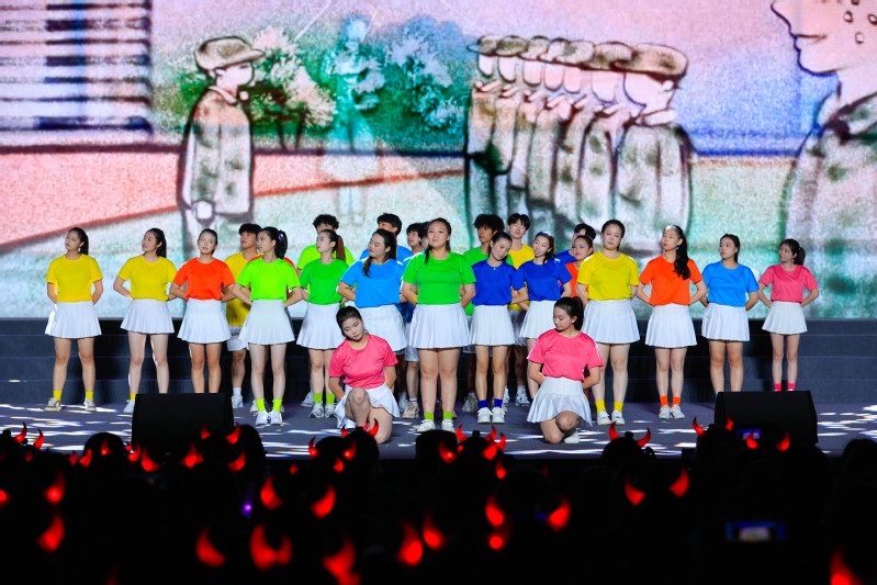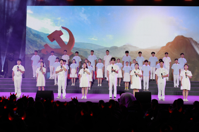 第三篇章“载梦同舟·绘宏图”寓意“小我”融入“大我”,绘就青春蓝图。歌舞《我们一起闯》,以激昂的旋律展现“强国有我”的青春誓言;舞蹈《天浴》诠释了青春活力与未来希冀;歌舞《领航》以磅礴的气势表达了对党和祖国的热爱与祝福。