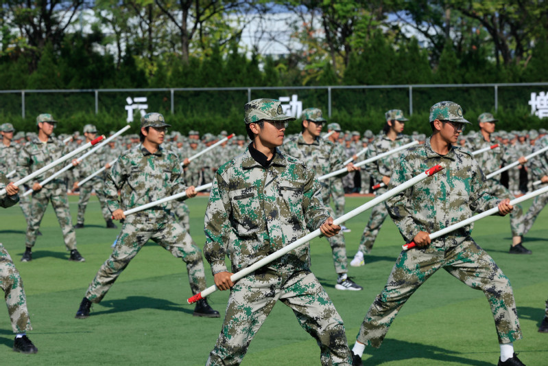 仪式上,2024级新生全体参训人员接受了检阅,全面展示了分列式、装甲战术、擒敌拳、匕首操、刺杀操、军体拳等军训成果,赢得现场阵阵掌声。