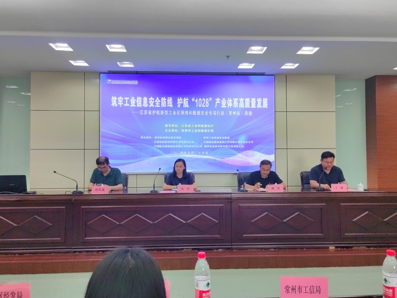 9月29日下午,由江苏省工业和信息化厅指导、常州市工业和信息化局主办,我校承办的“筑牢工业信息安全防线 护航‘1028’产业体系高质量发展——江苏省护航新型工业化网络和数据安全专项行动(常州站)”活动在紫厅召开。江苏省工业和信息化厅信息化发展处副处长张进、常州市工业和信息化局信息化发展处处长徐伟强,我校创意设计学院院长康晨、副院长丁峰及来自常州市各辖市区工信(经发)局相关人员、90余家企业代表参加了会议。本次会议由丁峰主持。