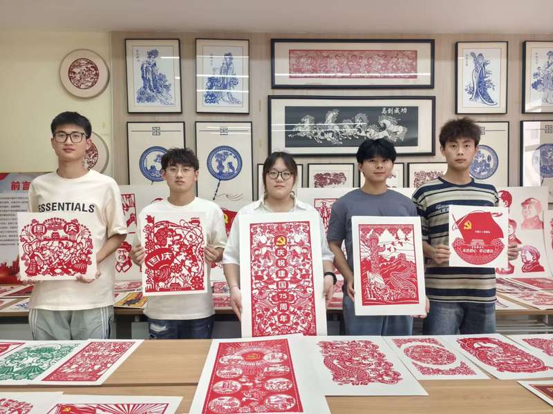 在刻纸非遗工作室,电气学子们亲身体验了刻纸艺术的魅力,与非遗传承人一起协作,勾勒出一幅幅以国史、党史为主题的精美刻纸作品,于刀刻纸落间感受传统文化的深厚底蕴。