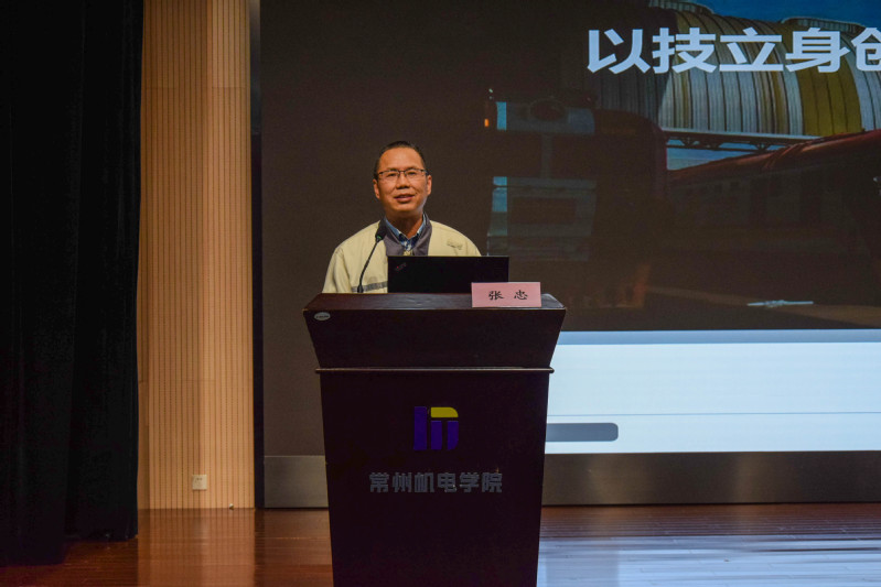 张忠结合自身的成长经历阐释了工匠精神的内涵,讲述了自己从一名焊接工人,成长为正高级工程师、国家级技能大师的历程;鼓励同学们立足专业,刻苦钻研,勤练技能,努力成长为高素质技术技能人才;介绍了“张忠国家级技能大师工作室”的主要成就,彰显新时代产业工人队伍建设的重要价值。