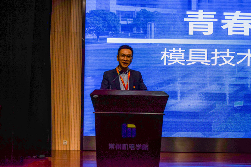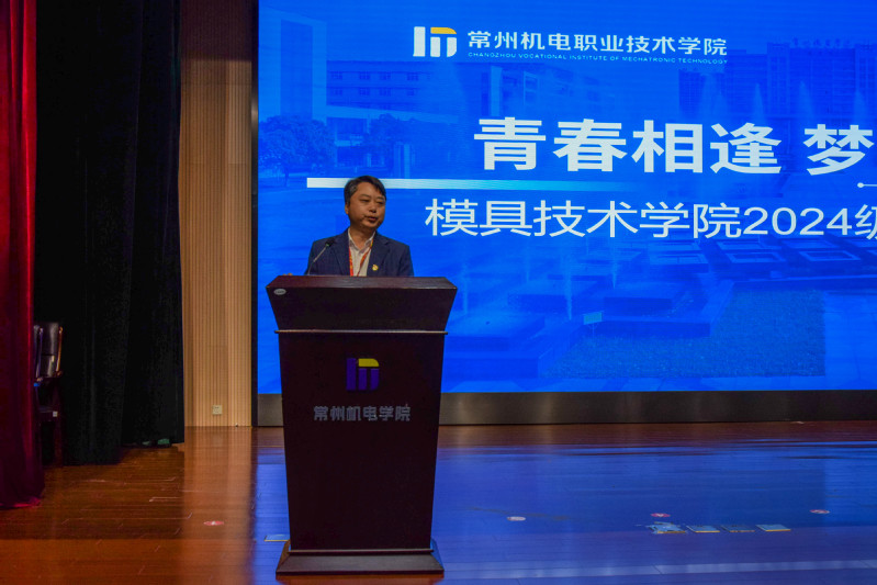 模具技术学院院长陆建军讲话。他详细介绍学院的专业设置及其特色,鼓励同学们积极参与各类竞赛与志愿服务,全面提升自身素质,并给在座的同学们提出三点希望:一是立鸿鹄之志,以奋斗点燃青春;二是立志专业,以硬功夫彰显青春;三是成广博之才,以学识浇灌青春,希望同学们通过学习知识、增长才干、练就本领,努力接过先辈们民族复兴的接力棒,担起国家富强的历史重任,答好新时代的“考卷”。