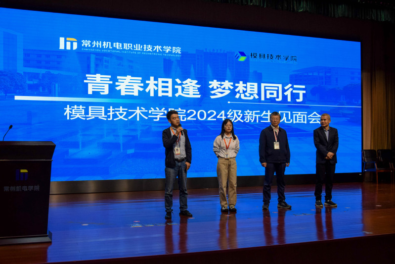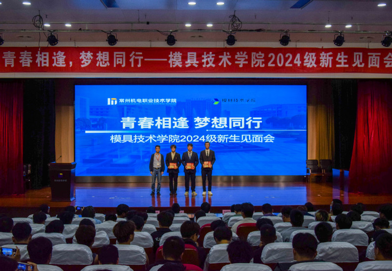10月8日晚,模具技术学院在红厅召开以“青春相逢,梦想同行”为主题的2024级新生见面会。模具技术学院领导班子、团队老师、全体辅导员、新生班主任、新生代表及2024级全体新生参加了新生见面会。本次见面会由模具技术学院团委书记姚建主持。