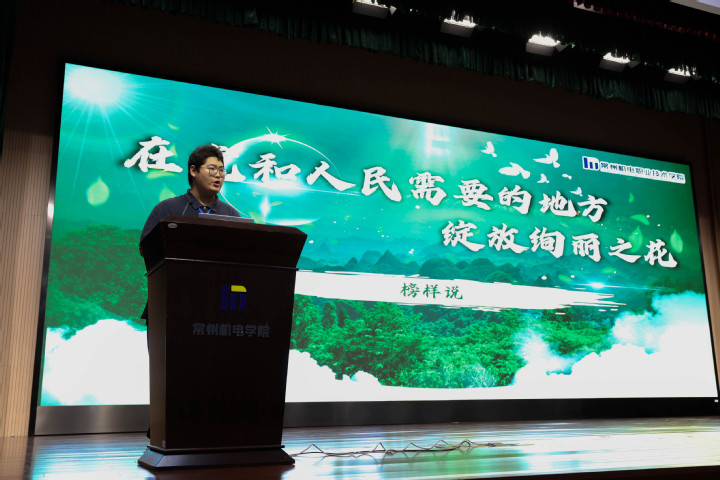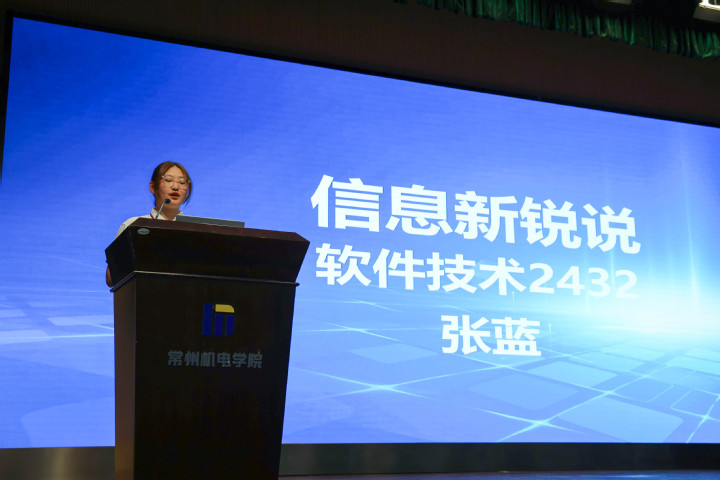 软件技术2432班张蓝作“信息新锐说”,代表全体新生立志在今后的学习生活中,做好人生规划,不忘初心,锻造意志品质,锤炼专业技能。
