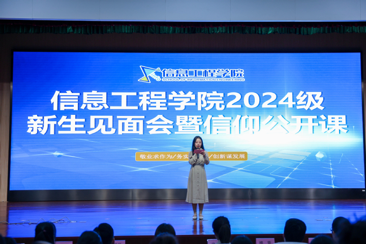 10月9日下午,信息工程学院武进校区2024级新生见面会暨信仰公开课在图书馆红厅举行。信息工程学院领导班子、团队主任、全体辅导员、新生班主任、2024级助理班主任以及2024级武进校区新生参加了新生见面会。本次见面会暨信仰公开课由信息工程学院团委书记秦希云主持。