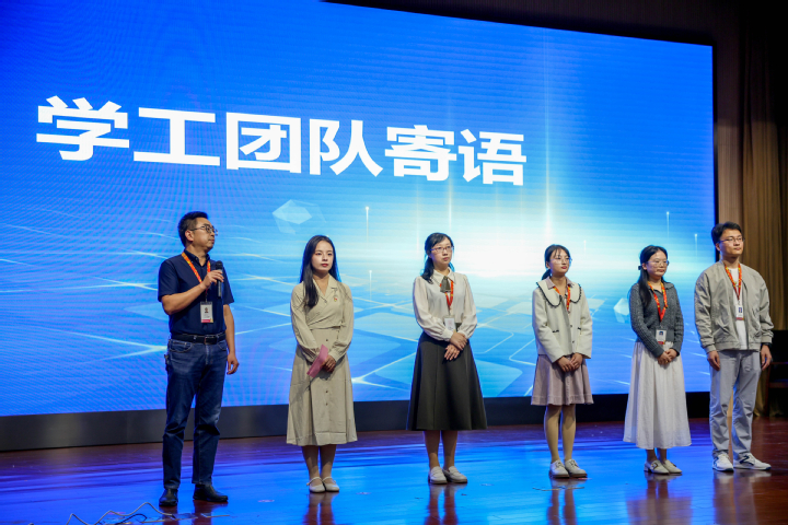 全体2024级新生观看教师介绍视频,企业校友寄语视频,学院领导、团队主任、学工团队老师上台与大家见面,并给全体新生赠言,激励同学们奋勇向前,不负韶华,不畏前路。
