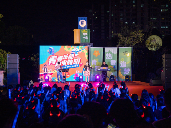 10月12日晚,创意设计学院“青春乐都,机电嗨唱”周末歌会在知行“YI”空间创意街区开展,将银辉万点的夜空与青春的炽热完美融合,编织了一场关于音乐、梦想与浪漫的梦幻篇章。
