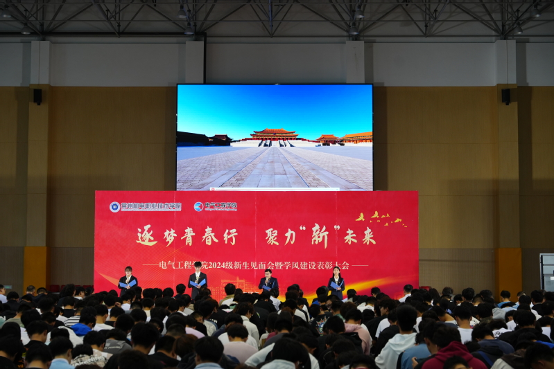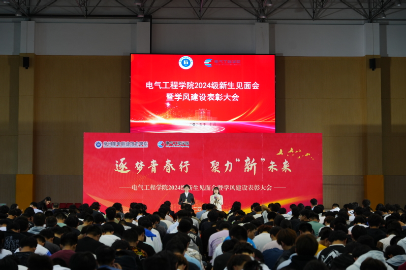 金秋送爽,熠展新程。10月16日,电气工程学院2024级新生见面会在学校体育馆举行。电气工程学院全体教师、2024级全体新生、校企合作代表、优秀校友代表等人员参加此次活动。本次活动通过“电气小团”抖音平台向新生家长在线同步直播。