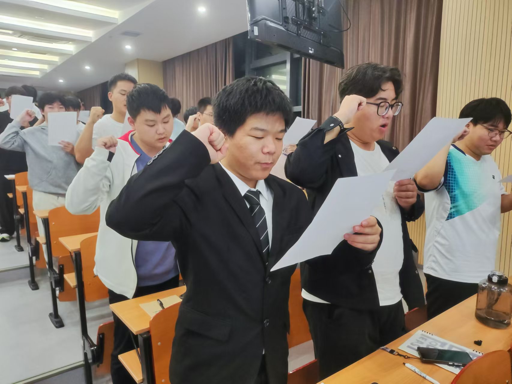 自律会学生干部带领全体宿舍长对宿舍安全责任进行宣誓,动员全体宿舍签署《电气工程学院学生宿舍安全责任书》并将其张贴在寝室中以提醒宿舍成员约束自我行为。