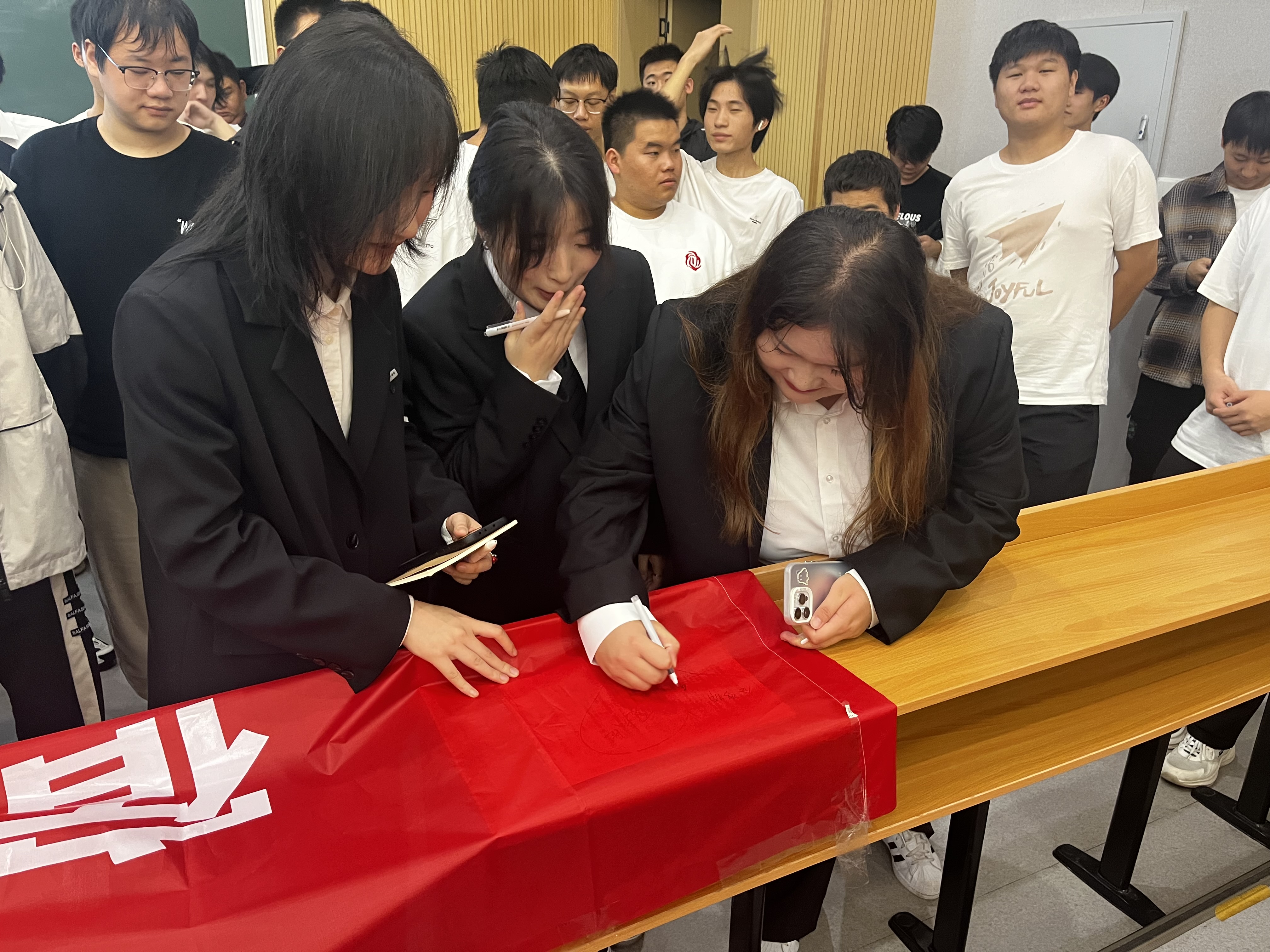 活动结束后寝室长们来到横幅前,认真地签下自己的名字并进行合影留念。