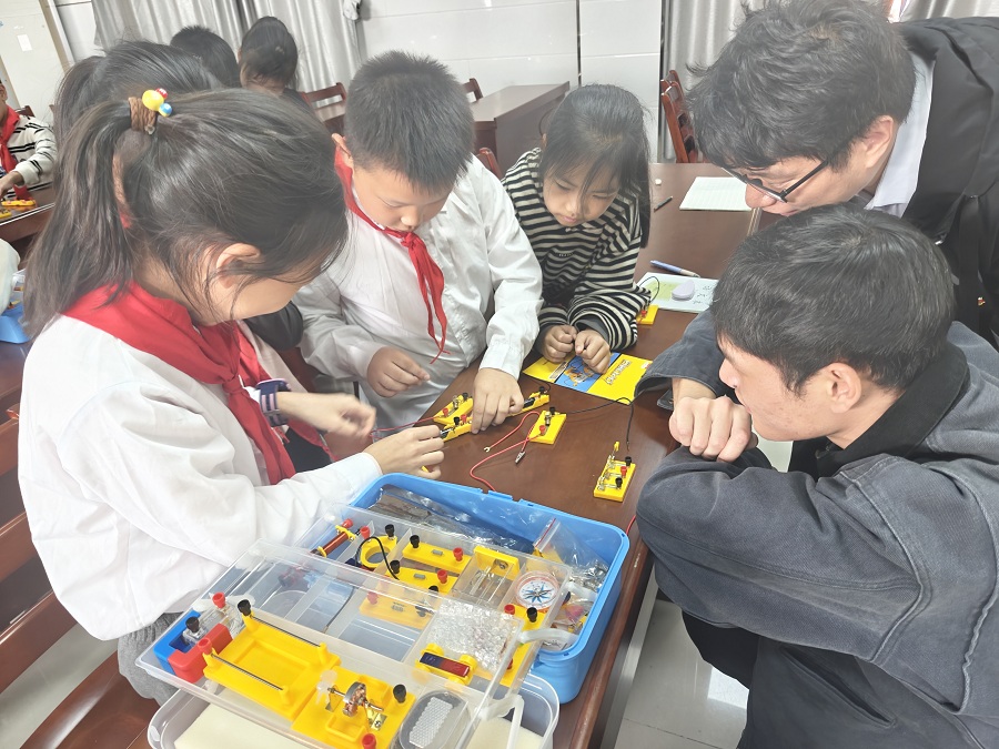 信息工程学院教师李长祥博士为该校30余名学生进行题为《初探人工智能的奥秘》的讲座,以声、光等孩子们喜欢的方式讲述了人工智能的起源、人工智能在生活中的应用等话题。现场气氛热烈,孩子们积极参与、互动频繁。马添麒老师带领学生分组开展电池点亮小灯泡、电池串联增加小灯泡亮度、单刀单掷开关控制小灯牌亮灭、手摇发电机点亮小灯泡等小活动,激发了学生探索科学的好奇心、提升了孩子们动手进行科学实验的勇气和信心。
