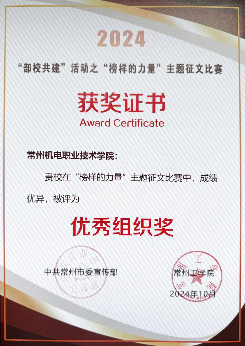 近日,由市委宣传部主办、常州工学院承办的“榜样的力量”主题征文比赛评选结果公布。