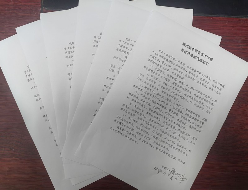 在签订师德师风承诺书环节,教师们郑重地在承诺书上签下自己的名字,承诺遵守教师职业道德规范,忠诚于教育事业,关爱学生,严谨治学,廉洁从教。