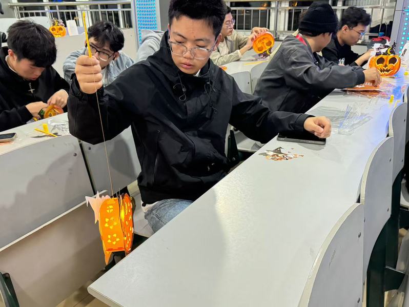 活动伊始,通过一系列简单而富有趣味性的热身环节,迅速点燃了现场气氛。轻松愉快的环境使同学们在欢声笑语中尽情展现自我,逐渐敞开心扉。同学们通过随机抽签分成若干小组,每组需共同完成一系列兼具趣味性、协作性和竞争性的游戏,如心有千千结、纸杯接力、猜歌识曲、你比我猜、“缘”来是你及南瓜灯制作等。同学们一起完成南瓜灯制作游戏,融入想象与创作,通过双手创造出独特且个性化作品。