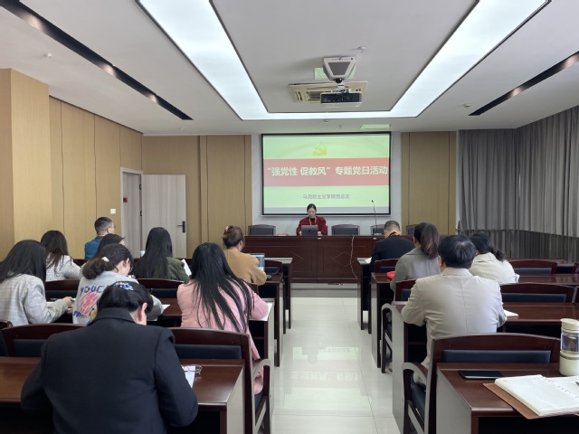 11月6日,马克思主义学院党总支开展了“强党性 促教风”主题党日活动,会议由党总支副书记宋田田主持,全体党员教师参加,教务处副处长王霆出席本次活动。