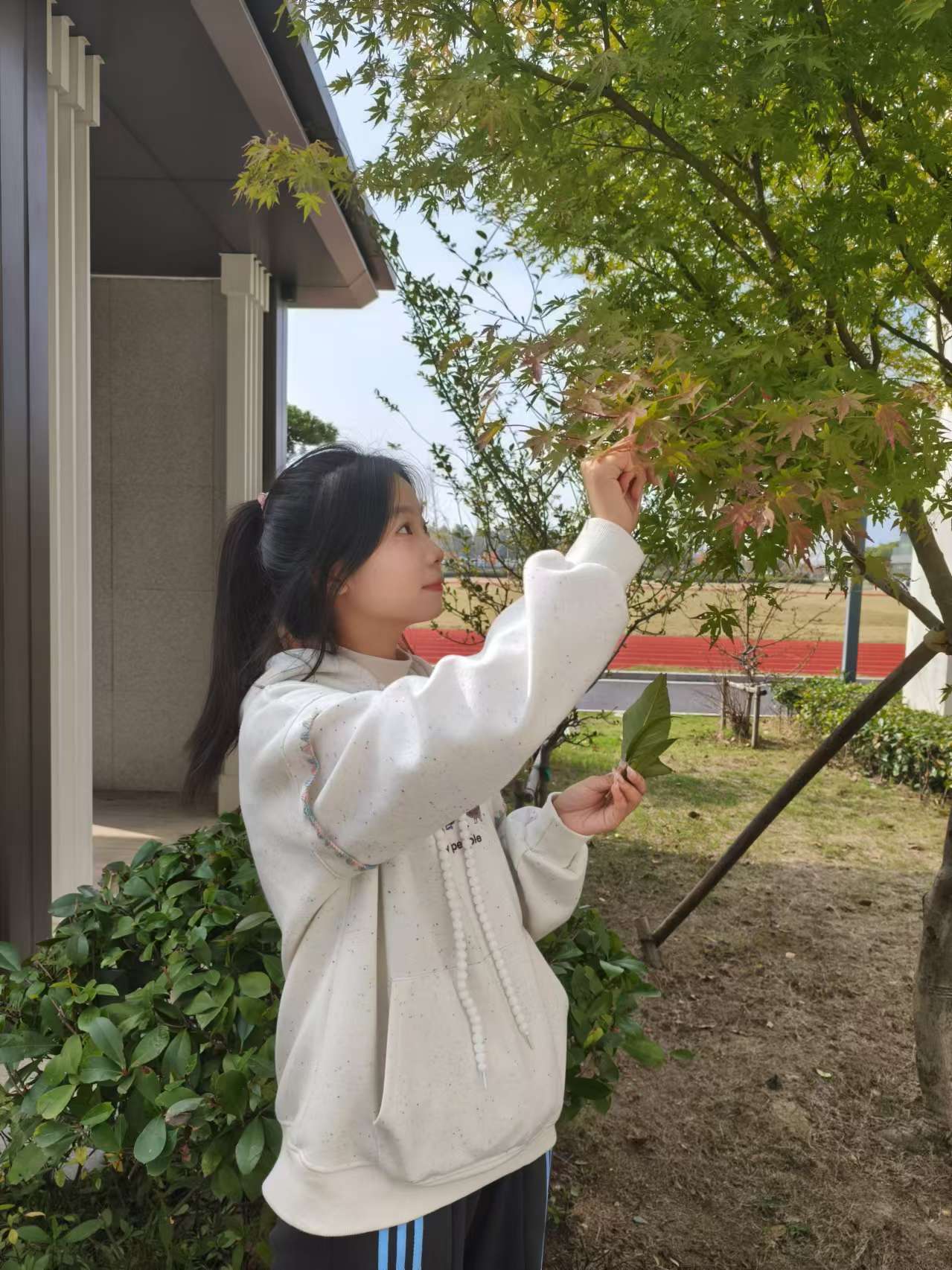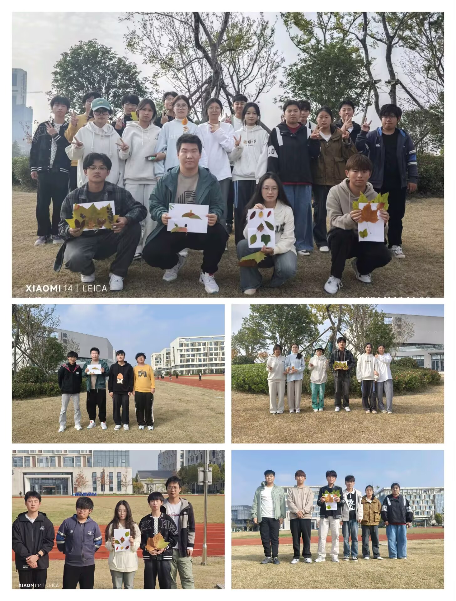 活动分为三个环节:秋叶寻迹、秋叶漫谈、秋叶存念。秋叶寻迹——同学们向漫天秋叶进发,寻找最有意义的三片树叶,在秋韵的环抱中,置身事外,让心灵与自然接壤。秋叶漫谈——同学们环坐在褐色的草丛间,讲述手中三片树叶的内涵“三片叶子能够组成红绿灯的颜色”,“枫叶代表了我最喜欢的角色”......融洽活跃的氛围里,同学们畅所欲言,烦闷的情绪逐渐淡去。秋叶存念——同学们用看似普通的树叶构思出了一幅幅海报,表达了他们对未来美好的期待及生活感悟。