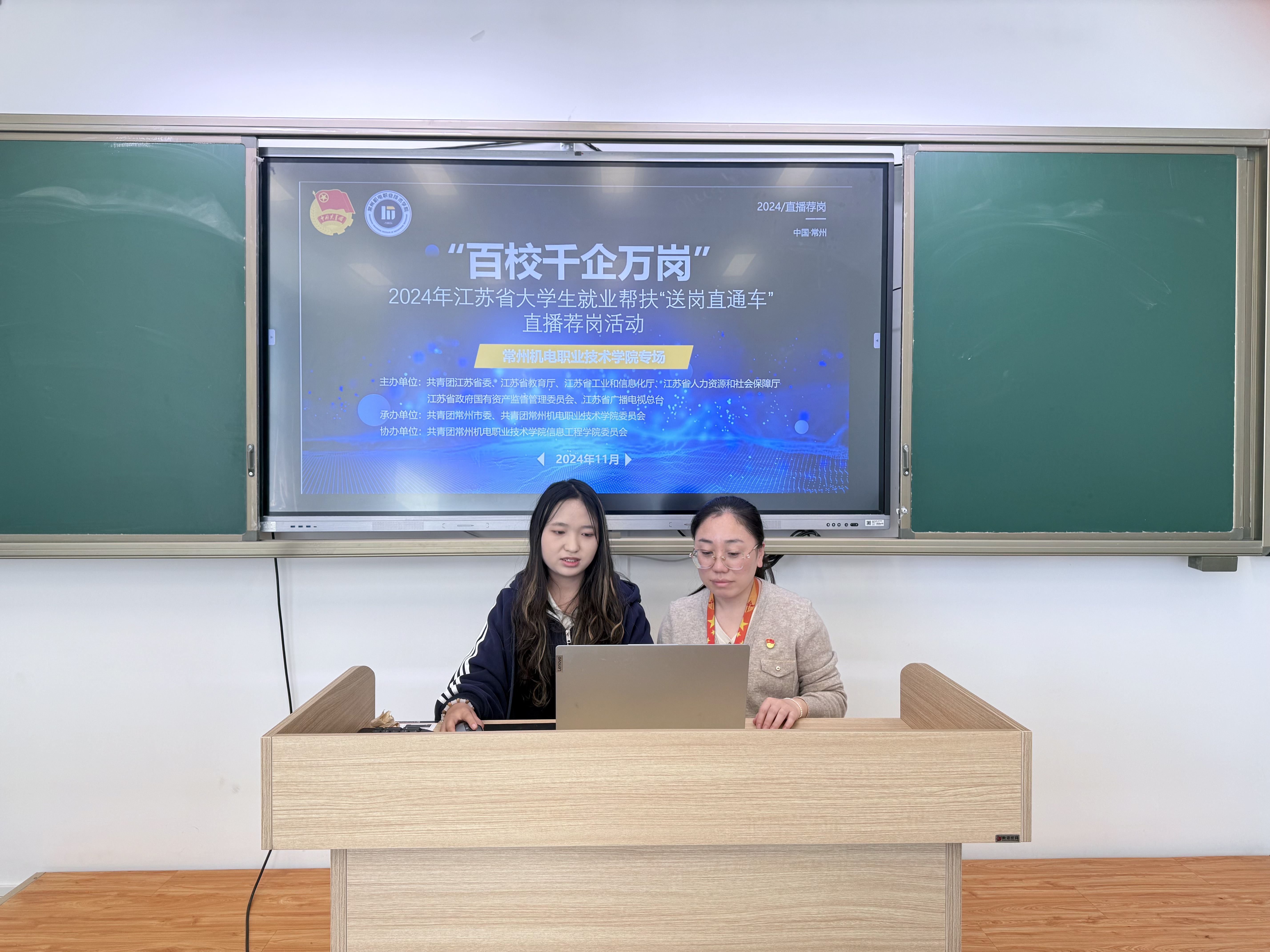 为贯彻落实党中央“六稳”“六保”决策部署,根据共青团“百校千企万岗”大学生就业帮扶工作要求,切实做好2025届毕业生就业工作,11月13日,由江苏省教育厅、共青团江苏省委等9家单位联合主办,共青团常州市委、校招生就业办公室、共青团常州机电职业技术学院委员会承办,我校信息工程学院团委协办的“百校千企万岗”2024年江苏大学生就业帮扶“送岗直通车”直播荐岗活动在我校溧阳基地顺利举行。通过线上线下相结合的方式,将招聘会搬上云端,打破了地域限制,让更多毕业生能够参与其中。