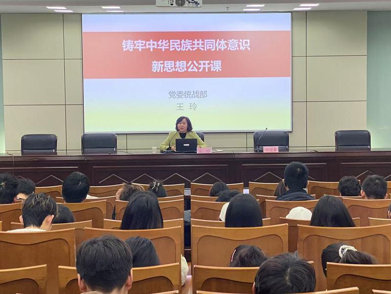 王玲从“深刻认识加强和改进党的民族工作的形势任务”“准确把握铸牢中华民族共同体意识的理论内涵”“全面贯彻铸牢中华民族共同体意识的实践要求”三个方面具体地阐释了中华民族与中华民族共同体的内涵意义,铸牢中华民族共同体意识对学生的学习生活、人际交往的影响,和对营造团结互助,文化育人美好校园的重要性。
