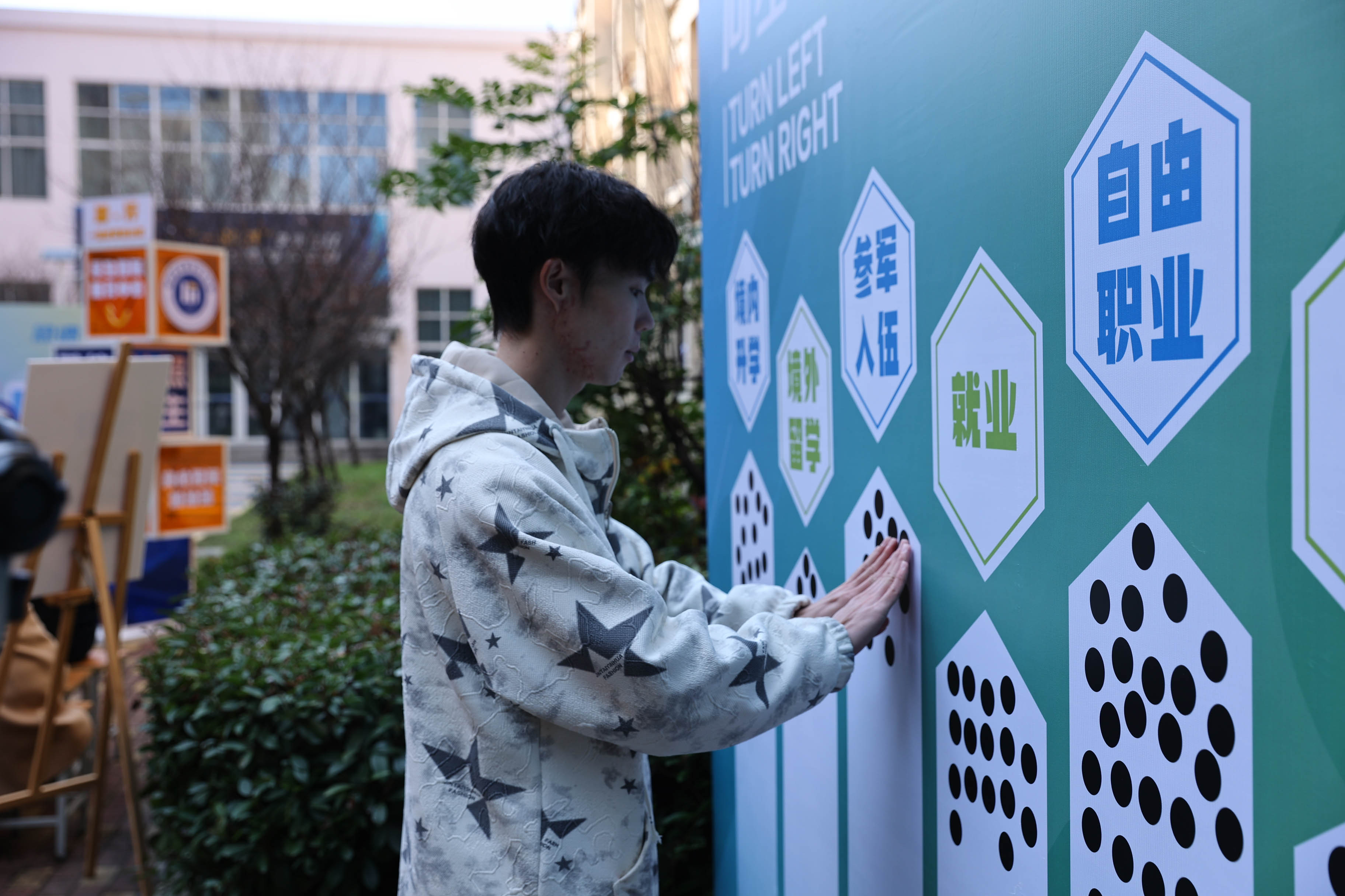 嘉年华活动通过丰富多样的体验项目,为学生搭建了一场寓教于乐的职业探索之旅。“职业飞行棋”让同学们模拟职场路径,直面职业发展的机遇与挑战;“天马行空”激发学生的想象力,挖掘职业兴趣;“急速60秒”培养团队协作与应变能力;“向左走?向右走?”帮助同学深入思考未来选择,明确个人目标。此外,现场还设立了生涯咨询台,提供专业的一对一指导。