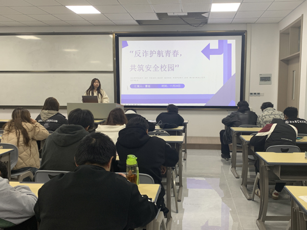 11月24日晚,创意设计学院在溧阳基地组织开展“反诈护航青春,共筑安全校园”防范电信网络诈骗护校园活动。