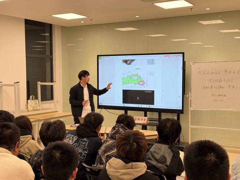 数字化三维创新与智造工作室指导老师邓文结合常用建模软件、建模设计辅修类软件等介绍了三维数字化设计与智能制造技术,并通过展示往届全国三维数字化创新设计大赛中的优秀作品鼓励同学们培养学习兴趣,积极探索实践。国家励志奖学金获得者自动化2236班学生尹健达、校一等奖学金获得者自动化2236班学生高宇则分别分享了全国二级MS Office高级应用和全国二级C语言程序设计、英语四级和英语六级的学习和备考经验。