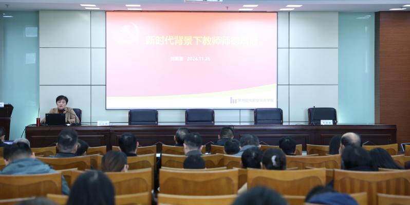 活动邀请人事处副处长刘莱蕾作题为《新时代背景下教师师德规范”》的师德教育课。刘莱蕾从“师德的内涵特点”“新时代教师师德的新要求”“学校师德师风建设要求及警示教育”“师德师风的自我养成”等四个方面,为机关全体教职工上了一堂师德师风教育课。她带领全体教职工集中学习了《新时代高校教师职业行为十项准则》《关于弘扬教育家精神加强新时代高素质专业化教师队伍建设的意见》等党和国家有关新时代教师师德师风建设的政策文件。她指出,师德师风是教育事业的灵魂和基石,关乎每一位教职员工的职业操守,是评价教师队伍素质的第一标准、首要标准。全体教职工要履行师德规范,以身作则,为人师表,以良好的师德维护好教师职业的神圣形象。