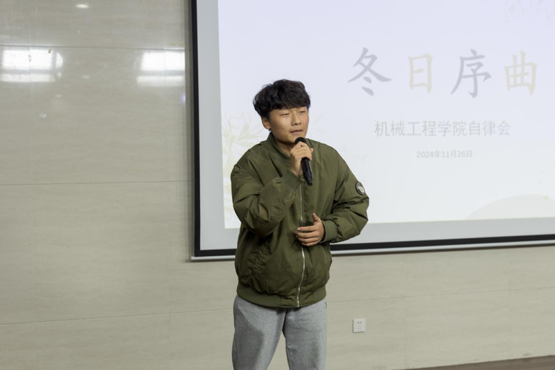 11月26日,机械工程学院自律会、“一站式”社区第一团支部举办了一场精彩纷呈的 “冬日序曲” 才艺表演活动。本次活动以歌唱、舞蹈、趣味互动等多种形式展现了机械工程学院学生们的多才多艺和青春活力。