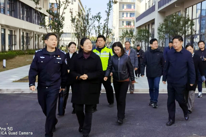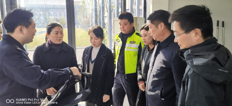 施雪芹实地察看校园安全防范情况,检查了校园警务室、校园防冲撞装置和应急处突设备、快递站等,听取了安保执勤、突发事件应急处置、周边交通治理、校园内保等工作情况介绍。