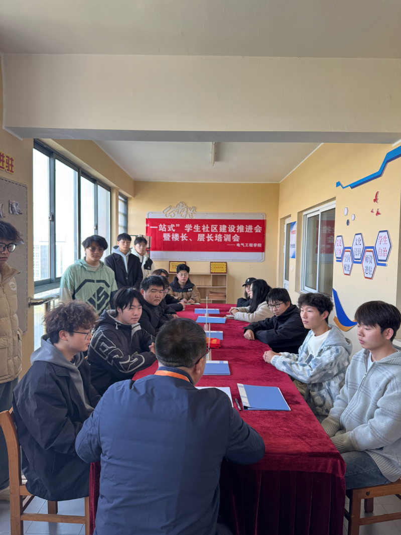 11月27日,电气工程学院“一站式”学生社区建设推进会暨楼长、层长培训会在师生公寓成功举办。学院党总支书记周斌、党总支副书记李兵,全体辅导员、班主任以及全体楼长、层长参加活动。