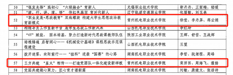 我校获奖的五个工作案例立足于工作实际,主题鲜明,观点正确,围绕思政课程与课程思政协同育人等重要内容,采取一案一议的撰写方式,展现了学校在方向引领、理论武装、铸魂立德、队伍建设等方面等方面的经验做法和工作成效,具有很强的针对性、指导性和现实推广意义。