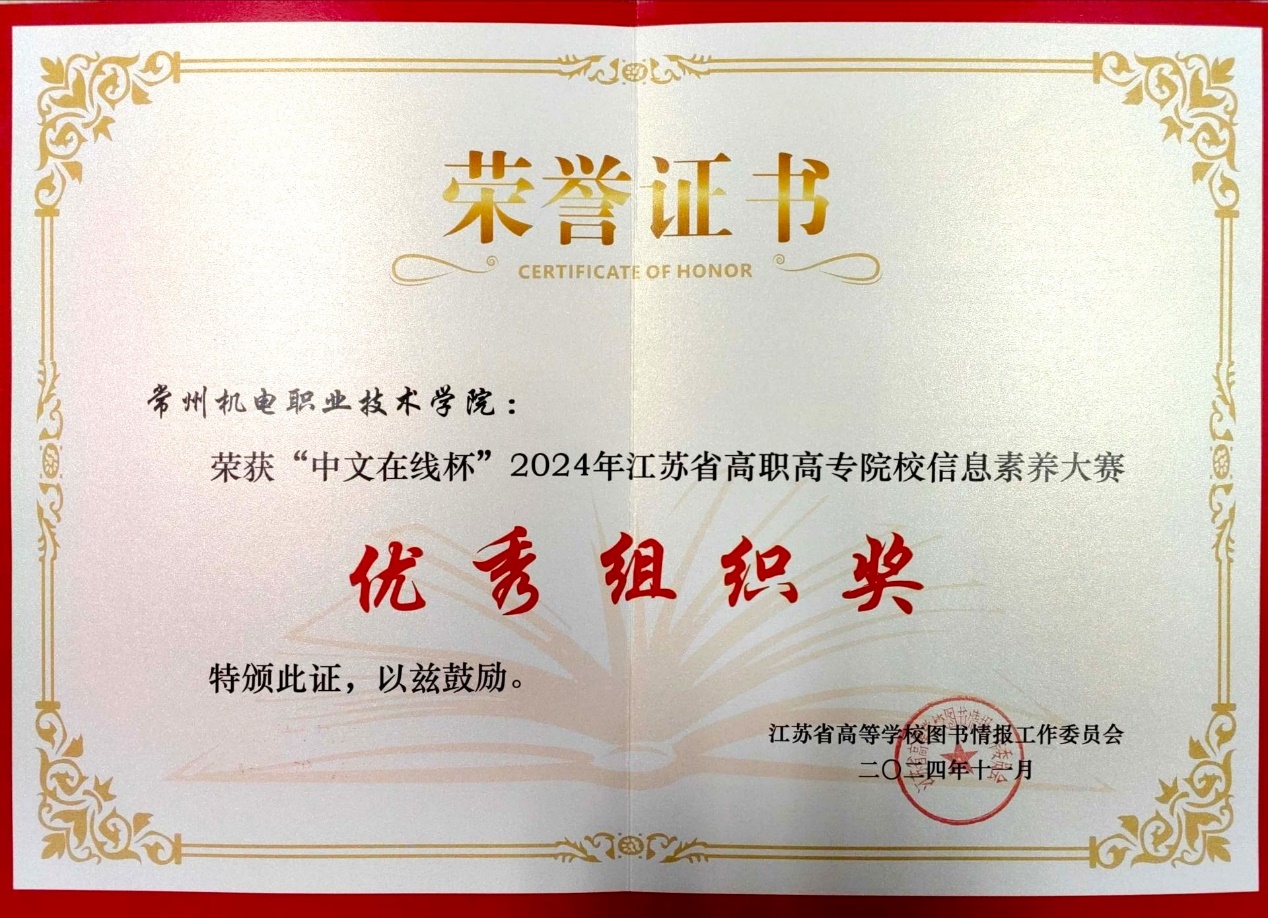 近日,由江苏省高校图工委高职高专院校图书馆建设专业委员会主办的“中文在线杯”2024年江苏省高职高专院校信息素养大赛落下帷幕。本次大赛包括学生个人赛和教师微课赛。