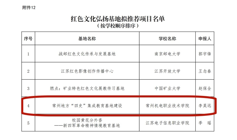 近日,江苏省教育厅公布了教育部2025年度高校思想政治工作质量提升综合改革与精品建设项目遴选结果,由我校副校长黄宝玲牵头申报的项目《打造“三融一体”心育模式,“画”解学生人际关系障碍——艺术疗法在心理辅导中的应用案例》入选教育部高校学生心理健康教育指导典型案例推荐名单,马克思主义学院院长李昊远牵头申报的项目《常州地方“四史”集成教育基地建设》入选教育部红色文化弘扬基地推荐名单。