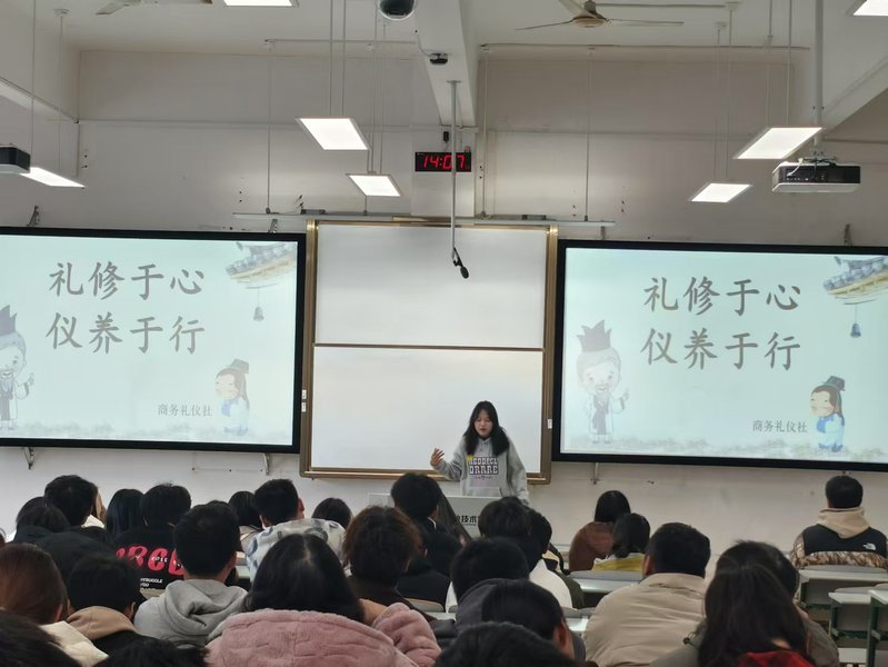 11月30日,经济管理学院联合商务礼仪社开展“礼修于心,仪养于行”主题活动。活动由社长王珂梦主持。