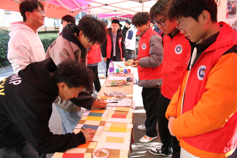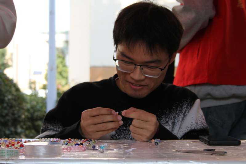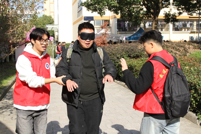 本次活动以互动体验的独特形式展开,在“视力障碍者”体验区,参与者们蒙上眼罩,在志愿者的扶持下,踏上专为视障人士生活而设计的道路,体会视障人士在黑暗中摸索前行的不易。在“语言障碍者”体验区,志愿者们轻声细语地传递信息,同学们用肢体语言进行演绎,深切感受到了残障人士在日常交流中所面临的困难。在“手部障碍者”体验区,同学们克服不便,仅用一只手不接触桌面,书写下对残疾群体的深情祝福。在“DIY手链”体验区,同学们在志愿者的指导下,挑选出代表自己心意的色彩,编织出寓意丰富的志愿者手链,每一串都是对残疾人士的关怀与支持。