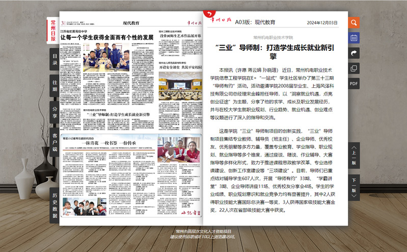 这是学院“三业”导师制项目的创新实践,“三业”导师制项目集结专业教师、辅导员(班主任)、企业导师、优秀校友、优秀朋辈等多方力量,覆盖专业教育、学业指导、职业规划、就业指导等多个维度,通过座谈、随谈、作业辅导、大赛指导等多样化形式,致力于推进课程思政教学改革、专业选修课建设、创新工作室建设等“三项建设”。目前,导师们已重点结对辅导学生607人次,开展“导师有约”33期、“学霸讲堂”3期、企业导师讲座11场、优秀校友分享会4场。学生的学业成绩、职业规划意识和就业竞争力均有显著提升,其中2人获得职业技能大赛国际总决赛一等奖,3人获得国家级技能大赛金奖,22人次在省部级技能大赛中获奖。