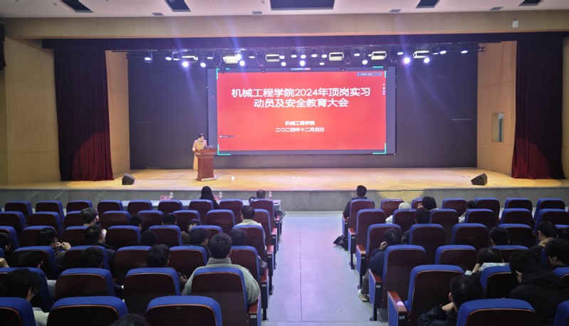 12月4日,机械工程学院在溧阳基地报告厅举办2024年学生顶岗实习动员暨安全教育大会。学院党总支书记陈叶娣、副书记游杰,产教合作部周斌,辅导员及全体2022级班主任、学生参加会议。