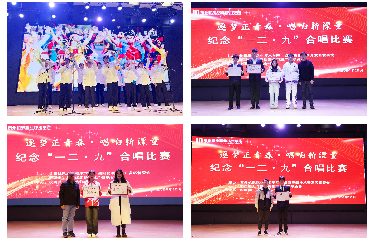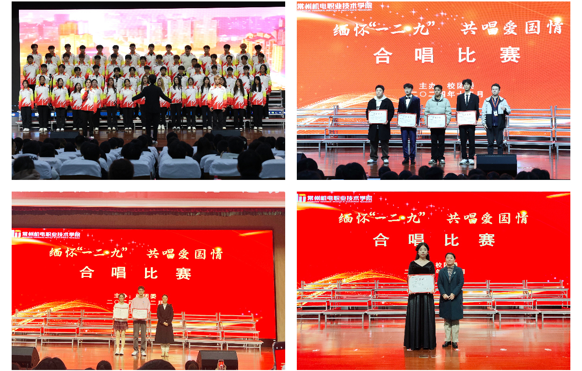 12月4日,我校“缅怀‘一二・九’共唱爱国情”合唱比赛在武进校区图书馆红厅与溧阳基地报告厅深情开唱。各二级学院以激昂旋律回溯历史,唱响爱国热忱。副校长黄宝玲出席,相关职能部门负责人,各二级学院党总支副书记、团委书记及学生参加活动。常州市文化馆副研究馆员、华音长青艺术团声乐团团长丁耘,公共艺术团队主任王伟,校大学生艺术团指导老师闵喆担任评委。