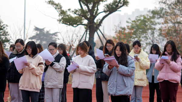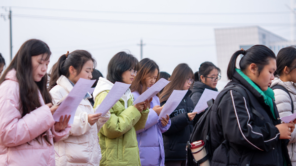 12月6日早晨,创意设计学院在溧阳基地组织2024级学生开展宪法晨读活动。