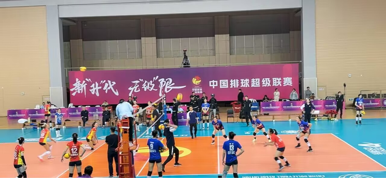 2024-2025年中国排球超级联赛,江苏女排对阵上海女排的比赛在武进体育馆举行。赛场上,江苏女排团结协作、顽强拼搏,默契配合为现场数千名观众,奉献了一场精彩激烈的比赛,诠释了新时代女排精神。
