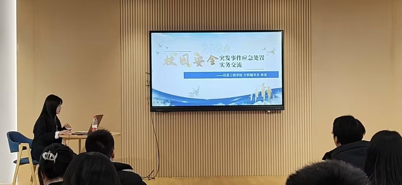 周鑫作了主题为防范和应对暴恐、个人极端事件处置的讲座。他结合真实具体的案例分析了个人极端事件以及暴恐事件的特点,并总结了突发事件的一般处理规律,依据三要素对预防突发事件的发生提出了相关建议,为学工干部提供校园突发事件处理思路,为学校精准做好学生突发事件应急预案提出了宝贵建议。信息工程学院辅导员林诺结合之前参加的相关培训,进行了校园安全突发事件应急处置实务的分享交流。