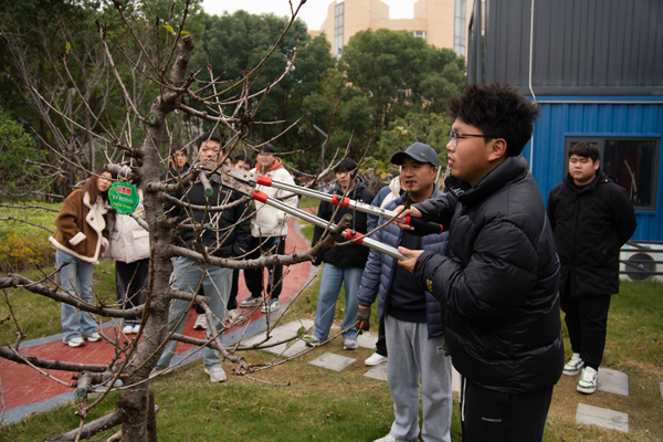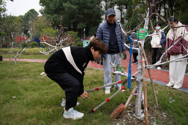 学院专门邀请农技专家走进创意街区,为学院师生讲解冬季樱桃树的生长特性、冬季养护的必备知识及方法,并现场指导同学们进行树枝修剪,去除病虫害、多余的枝条与枝叶,以防止树木营养不良。在专业老师的悉心指导下,同学们不仅掌握了理论知识,还学会了如何将知识应用于劳动实践中。在学院老师的带领下,同学们为樱桃树施加了有机肥和防冻液,为树木提供了必要的养料,有效保障了树木的健康生长。