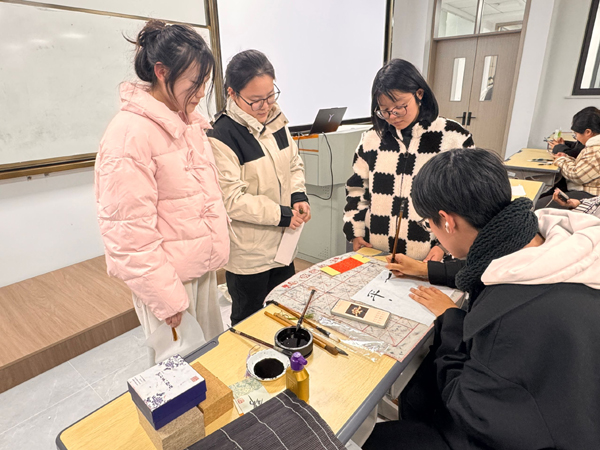 周炜博、储邓辉向大家讲解了书法的历史渊源与文化内涵,从古老的甲骨文到端庄秀丽的楷书,从飘逸灵动的行书到气势磅礴的草书,带领同学们领略书法艺术的博大精深。