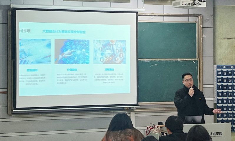 湖南中德安普江苏大区总经理张小刚以详实的数据与生动的案例,深入解读大数据与会计专业在数字化浪潮中面临的深刻变革与广阔发展前景,为同学们勾勒专业发展地图及定制系统的学习规划。江苏盐道运输公司副总经理迟克煜先生分享了退伍、转业、创业的个人经历,引导学生做好精准定位,树立清晰职业目标,密切关注行业动态,持续拓宽知识面与视野,为未来职场之路奠定良好基础。