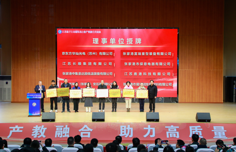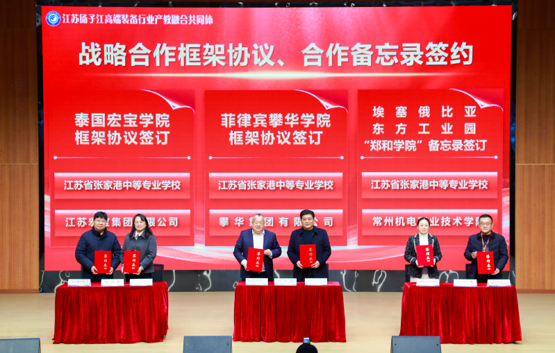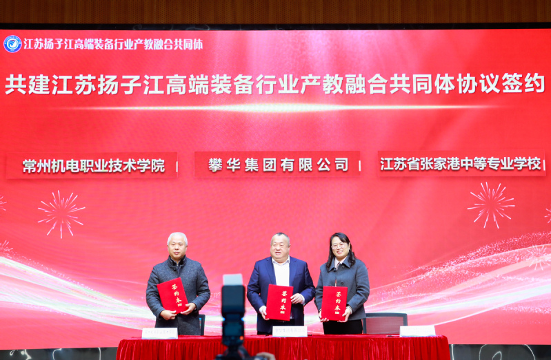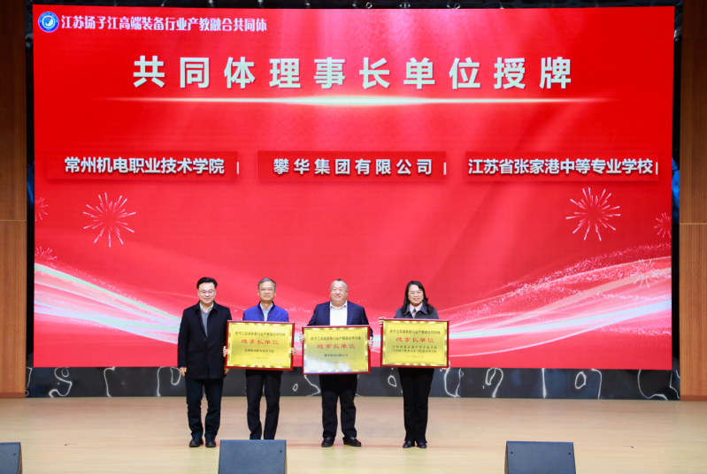 12月23日,由我校与攀华集团有限公司、江苏省张家港中等专业学校共同发起的江苏扬子江高端装备行业产教融合共同体成立大会在张家港中等专业学校举行。张家港市委常委、政法委书记邵军民,张家港市教育局局长成家武,江苏省张家港中等专业学校党委书记朱劲松及攀华集团董事长李兴华等30余家企业代表出席成立大会。我校党委书记沈琳、党委副书记朱平应邀参会,产教合作部、国际教育学院、团委、机械工程学院相关负责人随同参会。