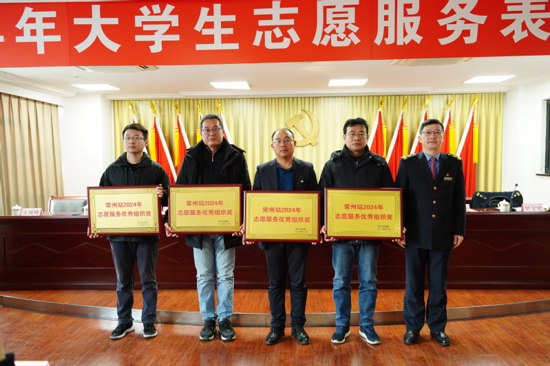 1月3日,上海铁路局常州站团委开展2024年大学生志愿服务表彰大会。常州站党委书记黄伟跃、副书记刘楠,我校校团委书记解峰及其他在常院校领导参加此次活动。我校荣获2024年志愿服务优秀组织奖,三位杰出的大学生志愿者荣获了“十佳优秀志愿者”的光荣称号。