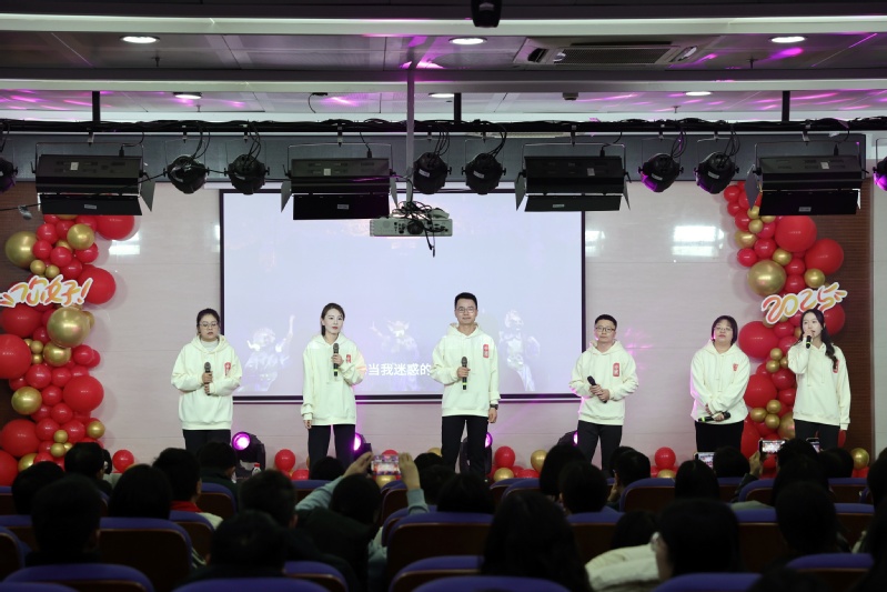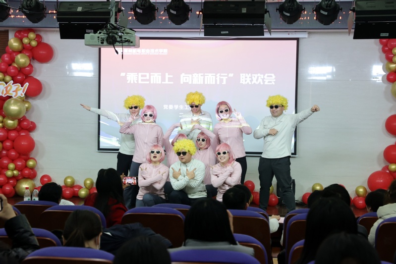 “乘巳而上 向新而行”联欢会上,节目精彩纷呈、形式多样,涵盖了舞蹈、合唱、创意配音秀表演、独唱、健身操、诗朗诵、歌舞串烧、配音表演、新年歌曲串烧等多种类型。机械学院的舞蹈《apt》活力四射,信息学院的合唱《若是月亮没来(辅导员特别版)》情真意切,模具学院的创意配音秀表演《我要上年会》幽默风趣,电气学院的独唱《鸿雁》悠扬动听,学工处全体成员带来的健身操《养身套餐》将现场气氛推向高潮。经管学院的诗朗诵《我爱上班》、创意学院的歌舞串烧、溧阳常驻辅导员的合唱《我的未来不是梦》、交通学院的配音表演《辅导员的日常》以及团委的新年歌曲串烧《拜新年》等节目,各二级学院与部门的辅导员们纷纷登台献艺,用精彩的表演展现了他们多才多艺的一面,也表达了对新年的美好祝愿与期待。