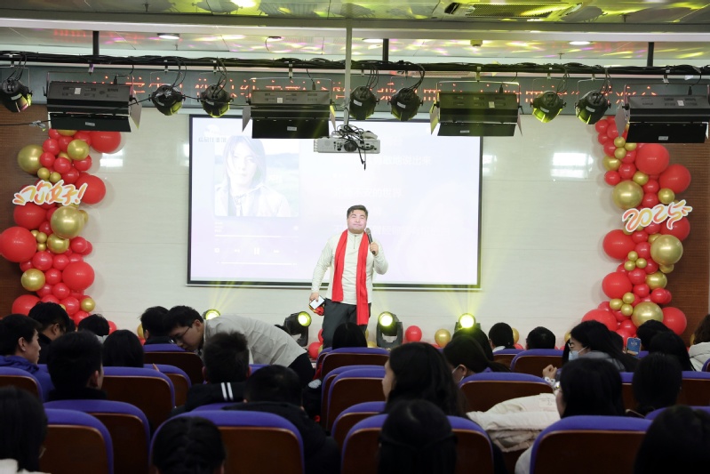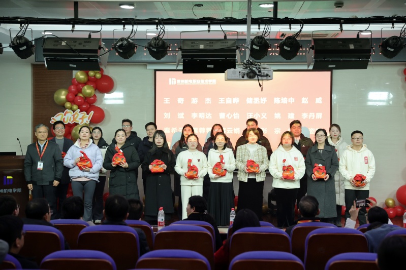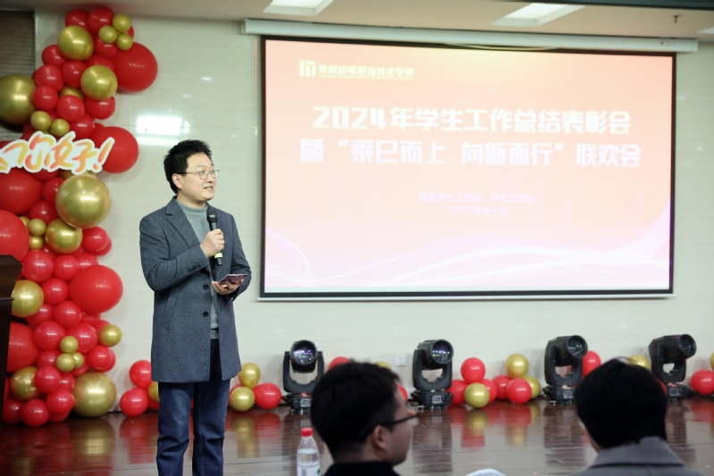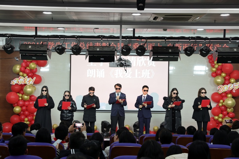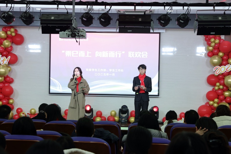 1月13日下午,我校2024年度学生工作总结表彰会暨“乘巳而上 向新而行”联欢会在图书馆蓝厅举行。党委副书记朱平、副校长黄宝玲出席,相关职能部门负责人,各二级学院党总支书记、副书记,全体辅导员,国际教育学院、学生工作处、团委全体人员参加。