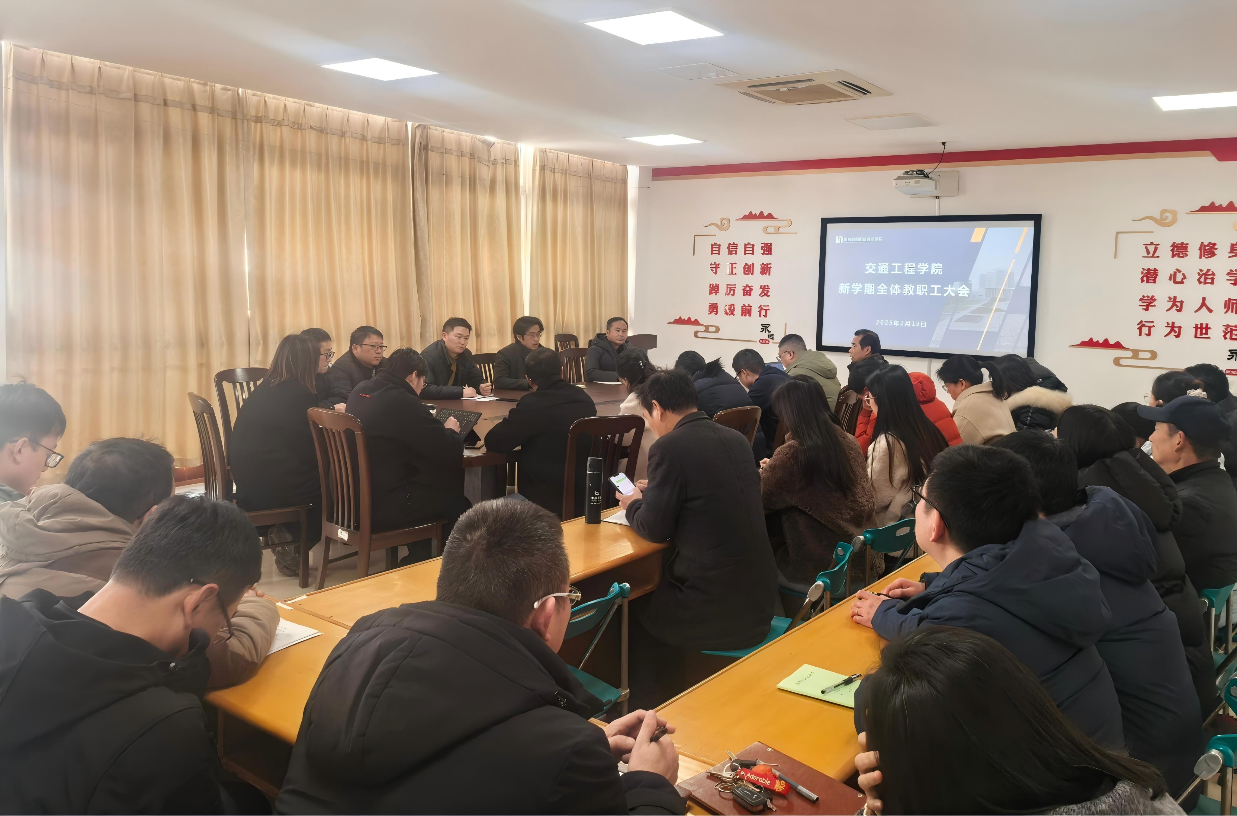 2月19日下午,交通工程学院在善为楼421室召开了新学期全体教职工大会。此次会议旨在全面部署新学期工作,明确职责与目标,确保学院各项工作有序开展。学院全体教职工参加会议。会议由学院党总支书记吴海东主持。