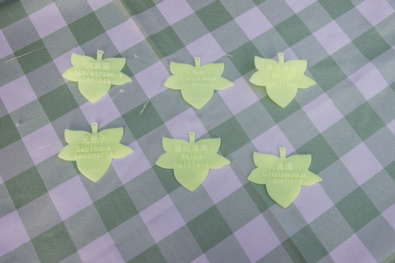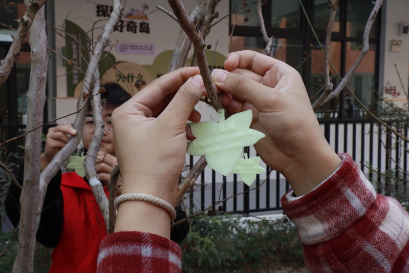 初次接触3D打印机时,团队成员孙梦园连启动按钮都小心翼翼。课堂学的建模技巧在实操中漏洞百出,树牌要么卡在喷头,要么脆如薄冰。在大家的共同努力下,不断修正设计参数,经过3天熬夜调试,树牌终在活动前夕“大功告成”。